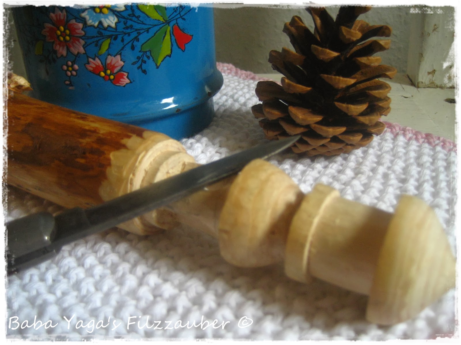 Daniel schnitzt aus Haselholz sehr schöne, kleine Türmchen. Wie haben dafür noch keine Verwendung, aber hübsch sehen se dennoch aus. Die Idee kommt wohl erst später :)